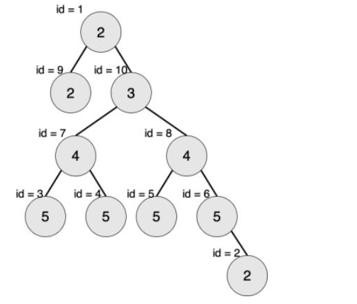 下图中节点内的数字为权值,节点外的id表示节点编号。